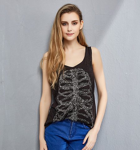 Sleeveless top design with a special skull pattern printing, simply but easy to catch fashion